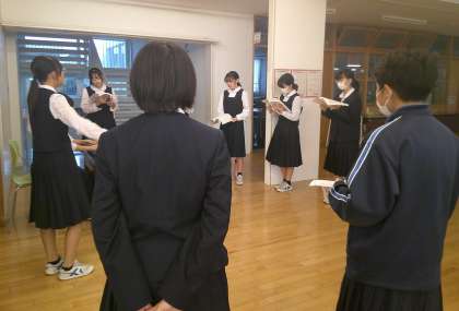 合唱練習 3−A 公開日 2024/10/23 更新日 2024/10/23 芝園の一日 10月23日(水) 放課後 3−Aです。パート練習の後、リーダーと先生で作戦会議。先生から「表情よく歌ったらいいよ〜。笑顔で!」とアドバイスをもらいました。