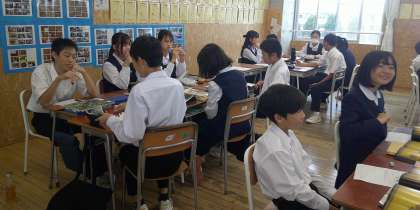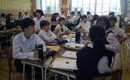 美術鑑賞を楽しむ 1−A美術 公開日 2024/10/24 更新日 2024/10/24 芝園の一日 10月24日(木) 1限 1−Aの美術の授業風景です。鑑賞の授業です。今日は「風神雷神図」を観て感じたことを、グループで対話しながら楽しく発表をします。
