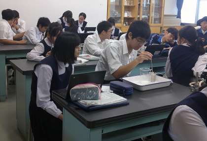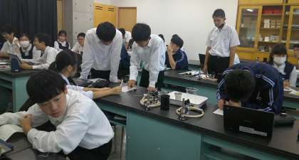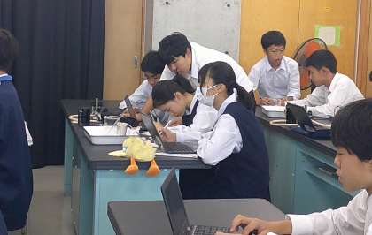 露点の実験 2−B理科 公開日 2024/10/24 更新日 2024/10/24 芝園の一日 10月24日(木) 1限 2−Bの理科の授業風景です。露点の実験をしています。コップに冷たい飲み物を注ぐと、コップの周りに水滴が付く。当たり前の現象ですが「なぜ起こるの?」と考えると、興味深いですね。