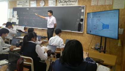 3−Cの理科の授業風景です。「仕事とエネルギー」について学習をしています。生活の中で起きる現象と関連付けながら考えを深めています。