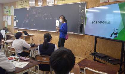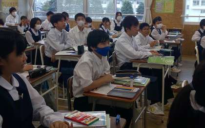 1−Bの理科の授業風景です。「どうして、物が見えるのか?」普段は疑問にも思わないことですが、改めて問われると不思議ですね〜。生徒は、これから身近な現象を体験したり、実験を通して「見えること」を追究していきます。