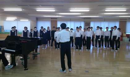 合唱コンクール前日です 2−C 公開日 2024/10/29 更新日 2024/10/29 芝園の一日 10月29日(火) 放課後 いよいよ明日が合唱コンクール本番となりました。どのクラスも、これまで深めてきた仲間との絆で、最高の合唱を披露してください。楽しみにしています。画像は2−Cです。ランチルームでの練習です。