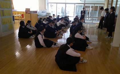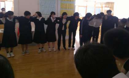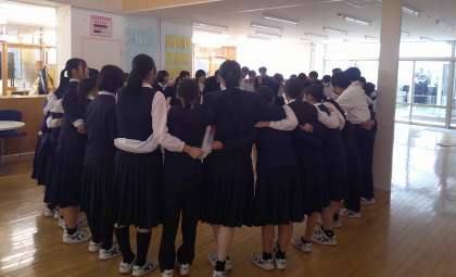 3−Aです。最後の合唱の後、みんなで円陣!気合いを入れました。