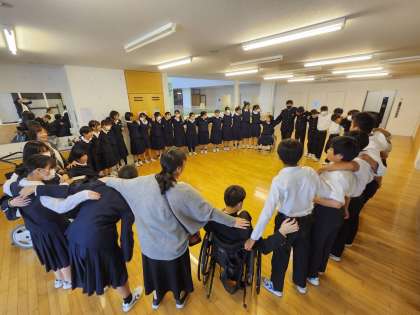 3ーCです。気合いを入れた後、担任の先生からみんなへ応援のエール。頑張ります!