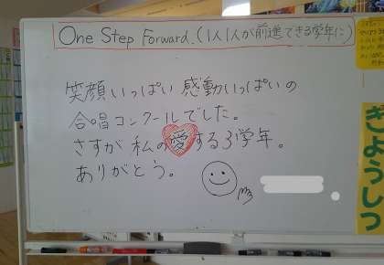 3学年のフロアには、合唱コンクールを終えて学年主任からのメッセージが書かれていました。胸が熱くなりますね。