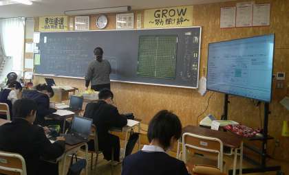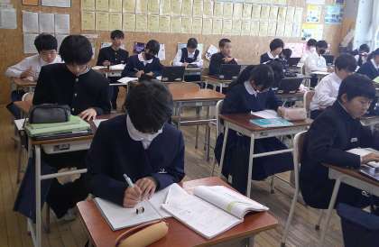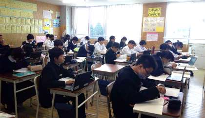 画像は1−Cの数学の授業風景です。比例の学習をしています。一人一人、集中して課題に取り組んでいます。