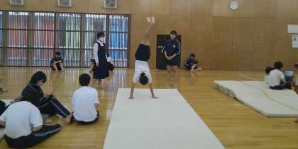 マット運動 頑張っています! 1−C体育 公開日 2024/11/05 更新日 2024/11/05 芝園の一日 11月5日(火) 2限 1−Cの体育の授業風景です。マット運動をしています。自分の技の動画を撮って、できていることや課題を確認します。