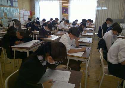 中教研学力調査 1日目 公開日 2024/11/06 更新日 2024/11/06 芝園の一日 11月6日(水) 3限 今日と明日は、中教研学力調査です。これまでの学習の確認ができる、よい機会です。十分に準備をして、力を試しましょう。画像は、3年生。集中しています!