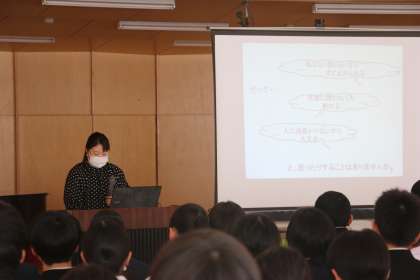 本日、学校薬剤師さんを講師に招いて「薬物乱用防止教室」を開催しました。薬物乱用防止教室では、薬物とはどういうものか、どういう危険があるのかということを学びました。これからの生活で正しい知識をもって薬を扱い、危険な薬物と決して関わることのよいように、今日の話をしっかり覚えておきましょう。