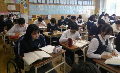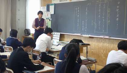 芝園百人一首を作ろう 3−C国語 公開日 2024/11/11 更新日 2024/11/11 芝園の一日 11月11日(月) 1限 3−Cの国語の授業風景です。「芝園百人一首を作ろう」という課題で学習を進めています。まずは、和歌について学んでいます。