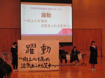 生徒総会 公開日 2024/11/12 更新日 2024/11/12 芝園の一日 11月12日(火) 6限に生徒総会が開かれました。 執行部をはじめ、各専門委員長が活動計画案を発表し、学級討議ででた質問に答えました。 賛成多数で議決され、いよいよ令和6年度後期生徒会の活動が始まります。みんなで生徒会活動を盛り上げていきましょう!