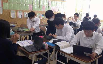 低気圧の一生 2−B理科 公開日 2024/11/13 更新日 2024/11/13 芝園の一日 11月13日(水) 1限 2−Bの理科の授業風景です。低気圧や前線について学習したことを、互いに伝え合っています。身振り手振りで前線の様子を説明しています。