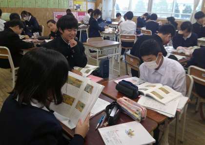 古典を読み深める 1−C国語 公開日 2024/11/18 更新日 2024/11/18 芝園の一日 11月18日(月) 2限 1−Cの国語の授業風景です。古典文学の学習をしています。まずは、グループで音読。うまく読めたかな?