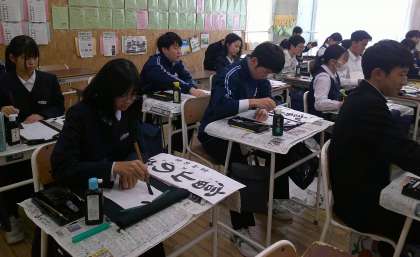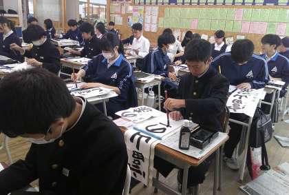 11月21日(木) 2限 2−Bの国語の授業風景です。習字の練習です。集中しています!
