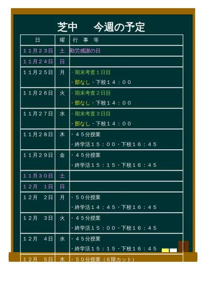 11月22日(金) 11/23〜の予定です。変更があれば、tetoruやホームページ等でお知らせします。