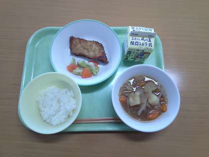 ・ベーコンとじゃがいもの煮物 ・甘酢あえ です。