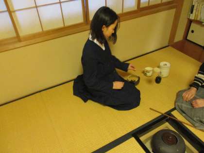 2年生は「炉」の点前の基本的な所作を練習しています。今学期中に、薄茶を点てるところまでできることが目標です。今日は、先生お手製のお菓子もいただきました。