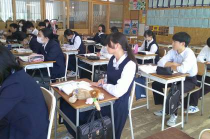 3−Cの数学の授業風景です。円周角の問題を考えています。