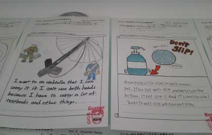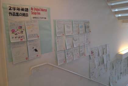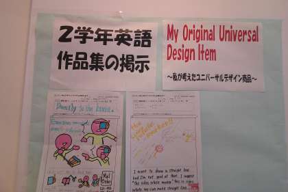 ユニバーサルデザインのものを考案! 2年英語科 公開日 2024/12/04 更新日 2024/12/04 芝園の一日 12月4日(水) 2年生の英語科の時間に作成したレポートが掲示してあります。タイトルは「ユニバーサルデザインのものを考え、発表しよう」。それぞれが考案した個性溢れる品物を、英語で表現しています。ぜひ、ご覧ください。