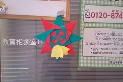 ほっと一息 公開日 2024/12/04 更新日 2024/12/04 芝園の一日 12月4日(水) もうすぐクリスマス。校舎内の所々に、生徒や先生お手製のクリスマスをイメージした飾り物が・・・。気持ちが和みますね。