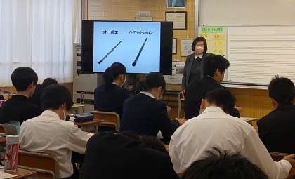 オーケストラ 2−A音楽 公開日 2024/12/05 更新日 2024/12/05 芝園の一日 12月5日(木) 1限 2−Aの音楽の授業風景です。オーケストラについて学習しています。様々な楽器で一つの音楽を創り上げるオーケストラ。興味津々です。