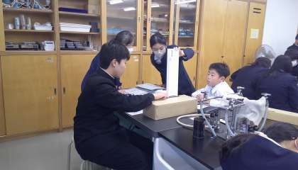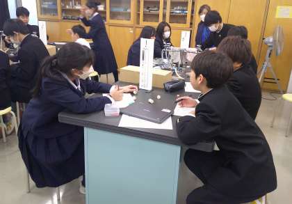 力の大きさとばねののび 1−A理科 公開日 2024/12/06 更新日 2024/12/06 芝園の一日 12月6日(金) 1限 1−Aの理科の授業風景です。力の大きさとばねののびの関係を調べています。みんな、実験が大好きです。