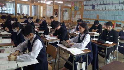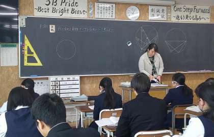 3−Bの数学の授業風景です。円周角の問題に取り組んでいます。
