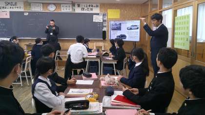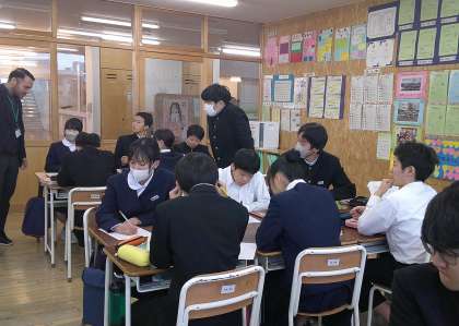 2−Aの英語の授業風景です。今日はALTの先生と一緒に活動です。