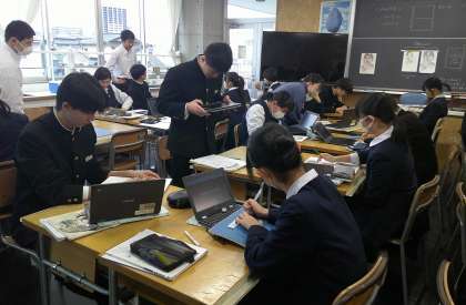 今のわたし〜自画像〜1 3−B美術 公開日 2024/12/13 更新日 2024/12/13 芝園の一日 12月13日(金) 1限 3−Bの美術の授業風景です。自画像もついに完成です。できた作品を端末で記録に残しています。