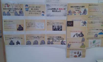後期生徒会がスタートして、1か月あまりが経ちました。執行部はもちろん、どの委員会も主体的に活動しています。活動の様子は、生徒玄関のホワイトボードに逐次記載されています。みんなで、盛り上げていこうね!【画像上:活動ボード、下:保健委員会のスライド】