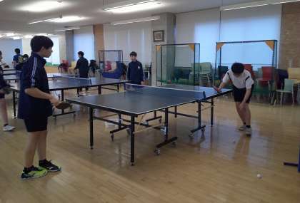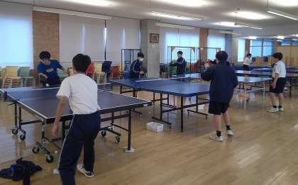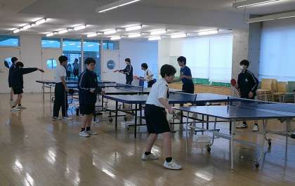 卓球部の活動の様子です。指導員さんの教えのもと、集中しています!