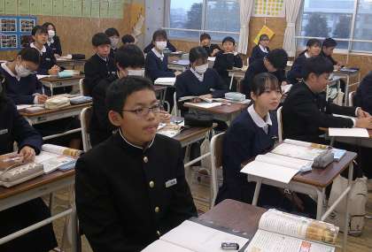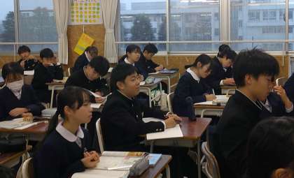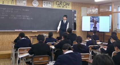 アイヌの人々と交易活動 1−A社会 公開日 2024/12/18 更新日 2024/12/18 芝園の一日 12月18日(水) 1限 1−Aの社会の授業風景です。室町時代における、アイヌの人々と交易活動について学習しています。