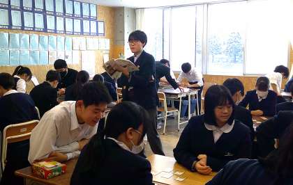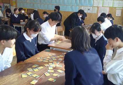 3−Cの国語の授業風景です。今日は百人一首をしました。もちろん、読み手は先生です。ステキです。