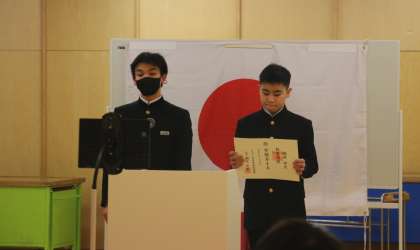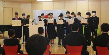 今日で、長かった2学期も終了となります。終業式に先立ち、まずは2学期に様々な分野で活躍した生徒の受賞報告会をおこないました。