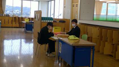 今学期、最後の学活です。1学年のフロアでは、担任が通知表を渡していました。よく頑張ったね!