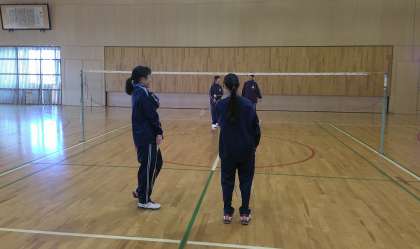 バドミントン部の活動の様子です。楽しく練習、いいですね