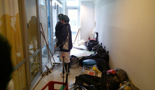 傷んだロッカーや道具を用務員さんに修理してもらい、隅々のゴミまで掃除しました。気持ちもスッキリです!
