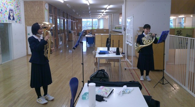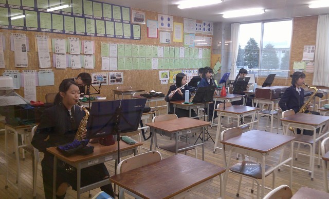 部活動も今日から始動しました。画像は、吹奏楽部です。アンサンブルコンテストに向けて、自主練にも力が入ります。
