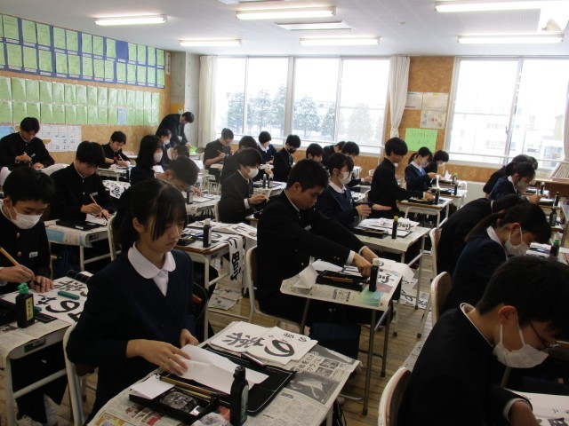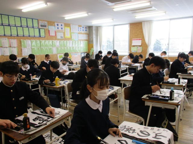 2学年 書き初め大会 公開日 2025/01/08 更新日 2025/01/08 芝園の一日 2学年は「富山の薬」という文字を書き初めしました。どのクラスも静寂な環境の中、1人1人が真剣に取り組んでいました。
