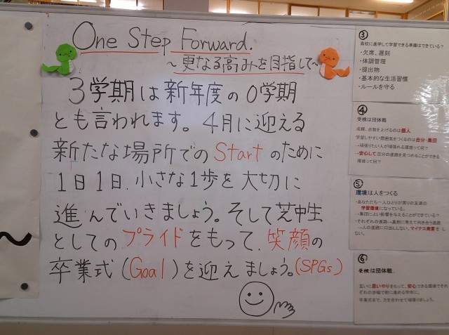 学年フロアには、学年主任からの熱いメッセージも書かれています。