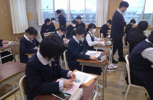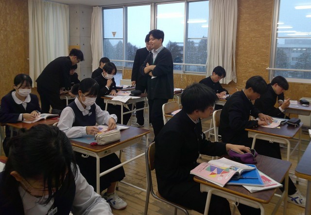 3-Aの数学の授業風景です。三平方の定理を活用した問題に挑戦しています。
