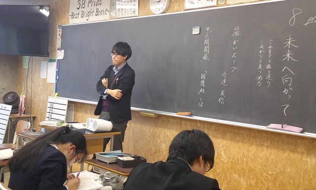 3-Bの国語の授業風景です。「温かいスープ」の教材で学習をしています。