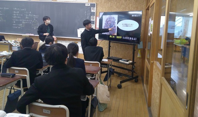 空想の世界へようこそ 2-B美術 公開日 2025/01/15 更新日 2025/01/15 芝園の一日 1月15日(水) 1限 2-Bの美術の授業風景です。「空想の世界」という単元の学習をしています。実際の絵画を鑑賞して、その魅力を味わっています。