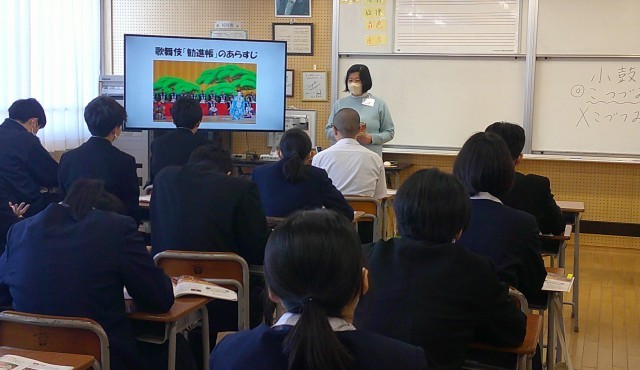 歌舞伎「勧進帳」 2-A音楽 公開日 2025/01/16 更新日 2025/01/16 芝園の一日 1月16日(木) 1限 2-Aの音楽の授業風景です。歌舞伎「勧進帳」について学習しています。日本の古典芸能に興味津々です。