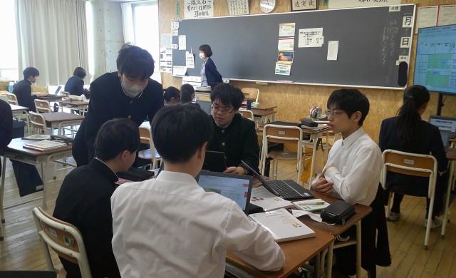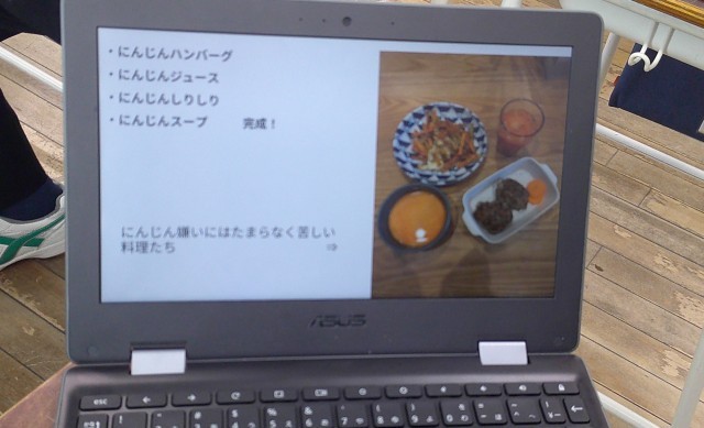 問題解決的な学習1 2-C家庭科 公開日 2025/01/16 更新日 2025/01/17 芝園の一日 1月16日(木) 1限 2-Cの家庭科の授業風景です。「自分の食生活から課題を見つけて、解決しよう!」という課題で、探究活動をしています。にんじんを克服するメニューを考え、実際に調理した過程を、端末を使ってまとめている生徒もいます。課題の追究は楽しそうです!