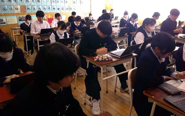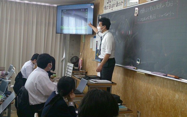 3-Bの理科の授業風景です。星の見え方について学習しています。端末を活用すると、星の年周運動もたいへんわかりやすいです。