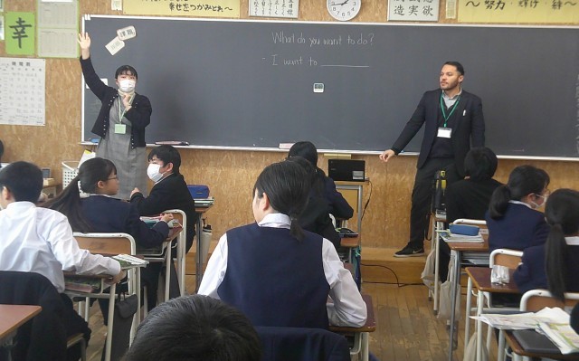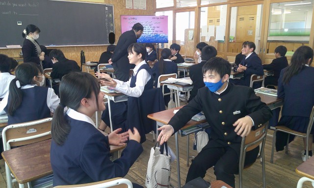 楽しく授業 1-B英語 公開日 2025/01/21 更新日 2025/01/21 芝園の一日 1月21日(火) 5限 1-Bの英語の授業風景です。今日はALTの先生と一緒に活動。いきいきしていますね!
