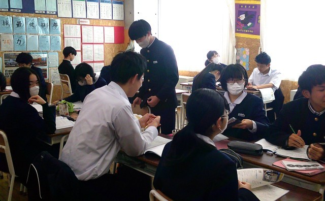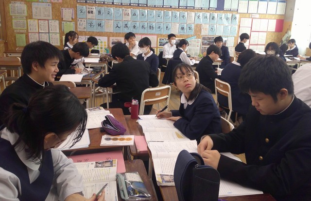 3-Aの英語の授業風景です。本文の読み取りをしています。