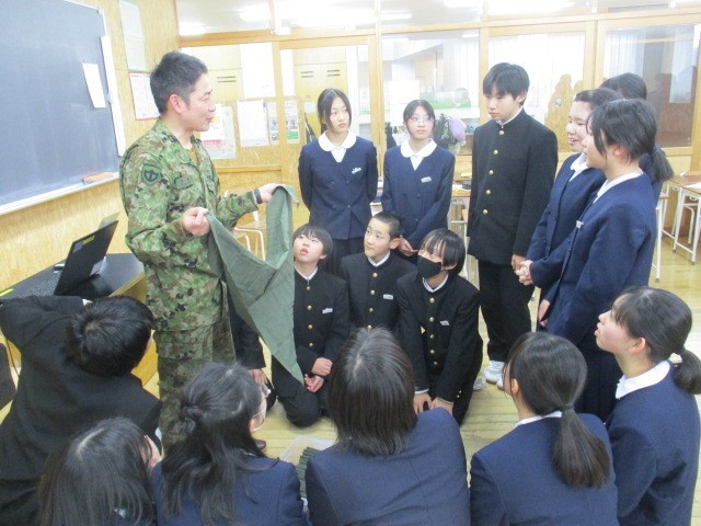 自衛隊では、たくさん職種に分かれていることについてお話いただいたり災害時やけがをしたときに実践できる方法等を実習したりしました。