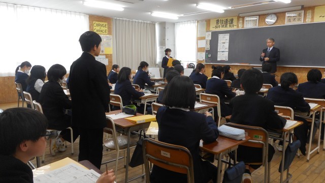 1年生は、「働く人に学ぶ講演会」で、それぞれ2つの職種について、実際に働いておられる方のお話を聞きました。